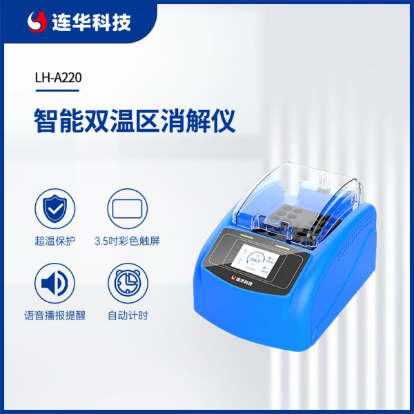 连华科技牌的连华科技COD总磷总氮硫酸盐甲醛高猛酸盐指数双温区消解仪LH-A220产品:估价:7800.00,规格:LH-A220,产品系列编号:LH-A220 发布日期:2025-1-9